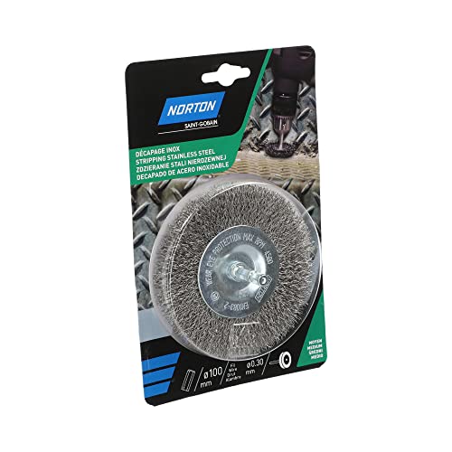 Norton Spazzola trapano asta esagonale circolare Ø 100 filo in acciaio inox intrecciato stripping potente nero