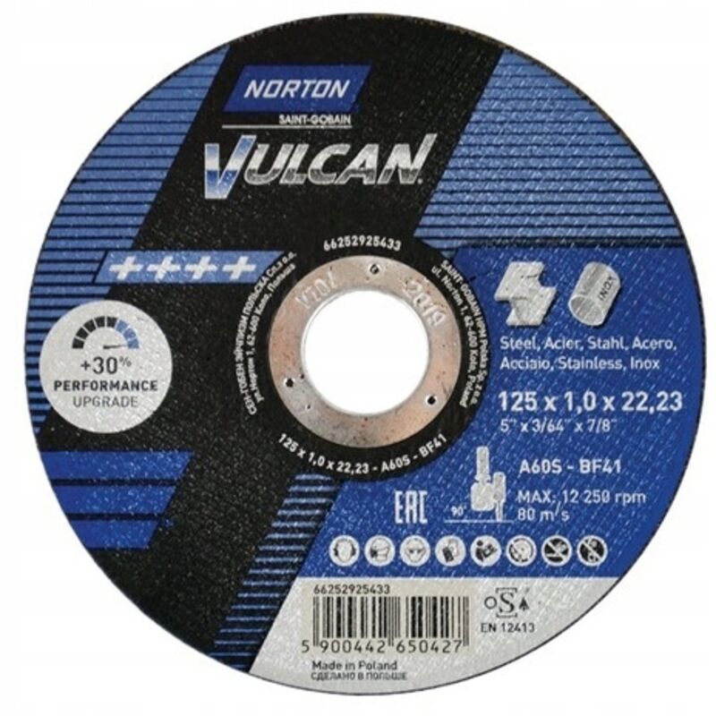 NORTON ZESTAW TARCZ VULCAN 125mm x 1mm METALLO/INOX 100szt. +2xFIBRA 100szt.
