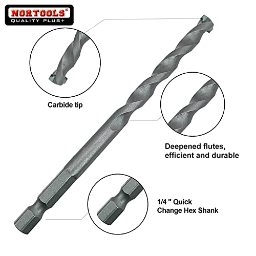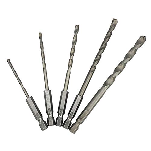 NORTOOLS Set di 5 pezzi punte per muratura con punta in metallo duro con codolo esagonale 3 4 5 6 8 mm