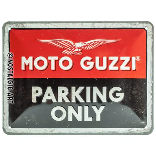 Nostalgic-Art Retro Blechschild, Targhe Vintage, Moto Guzzi - Parking Only - Idea regalo per amanti di motociclisti, in metallo, Design retro per decorazione, 15 x 20 cm