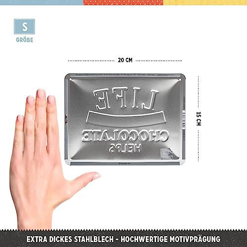 Nostalgic-Art Targa Vintage Life Happens - Chocolate Helps - Idea regalo per i nostalgici, in metallo, Design retro per decorazione, 15 x 20 cm