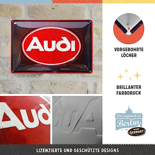 Nostalgic-Art Targhe Vintage Audi - Logo Red Shine - Idea Regalo per Accessori per Auto, in Metallo, Design Retro per Decorazione, 20 x 30 cm