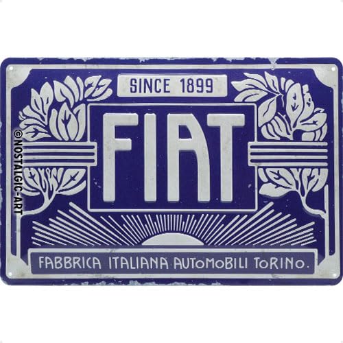 Nostalgic-Art Targhe Vintage, Fiat - Since 1899 Logo Blue - Idea regalo per amanti di auto, in metallo, Design retro per decorazione, 20 x 30 cm