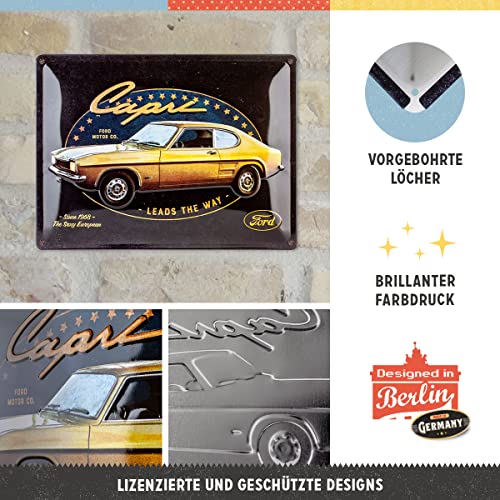 Nostalgic-Art Targhe Vintage Ford Capri - Idea Regalo per Accessori per Auto, in Metallo, Design retrò per Decorazione, 30 x 40 cm