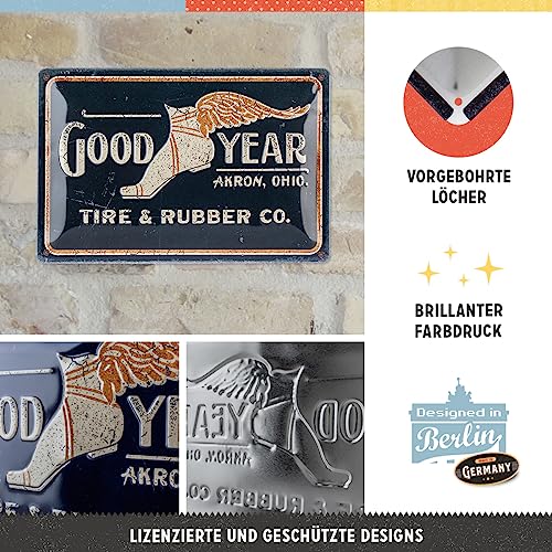 Nostalgic-Art Targhe Vintage, Goodyear - Wing Foot Logo - Idea regalo per amanti di auto e moto, in metallo, Design retrò per decorazione, 20 x 30 cm