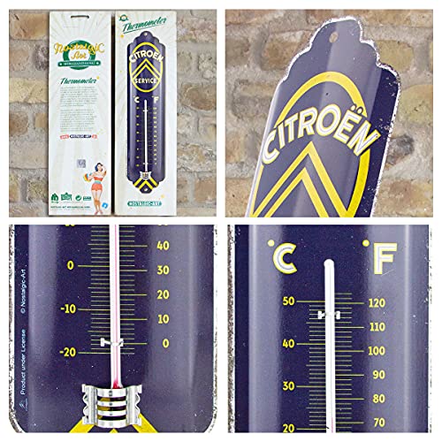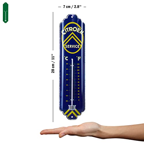 Nostalgic-Art Termometro analogico Citroen - Service - Idea Regalo per Accessori per Auto, in Metallo, Design Vintage Come Decorazione, 6,5 x 28 cm