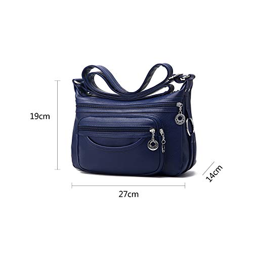 NOTAG Borsa Donna, Moda Pelle PU Borsa a Tracolla Molte Cerniera Tasche Borse a Spalla (Blu)