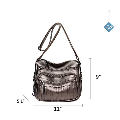 NOTAG Borsa a Tracolla Donna, Multi-Tasca Borsa a Mano In PU Pelle Borsetta da Viaggio (Bronzo)