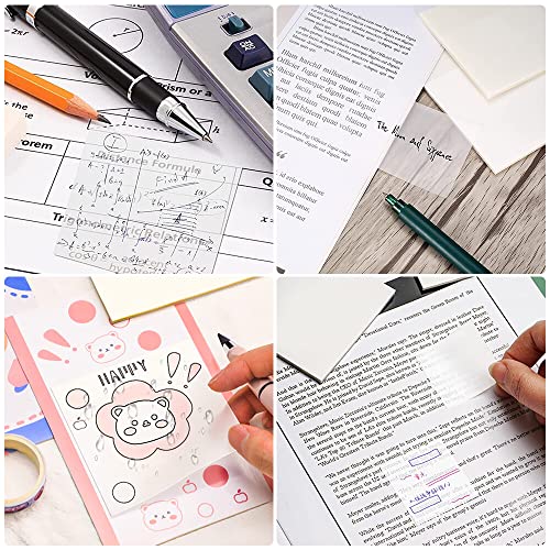 Design trasparente: i 4 formati dei Note Adesive sono tutti trasparenti, che possono coprire il contenuto del libro o del documento per segnare, scrivere o modificare senza bloccare e distruggere il testo originale, e possono essere perfettamente rimossi anche se scritti in modo errato.