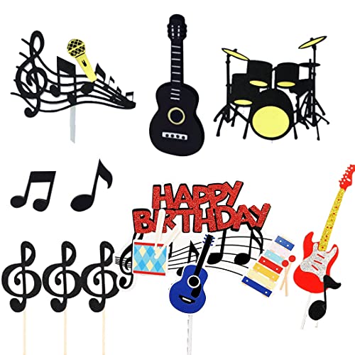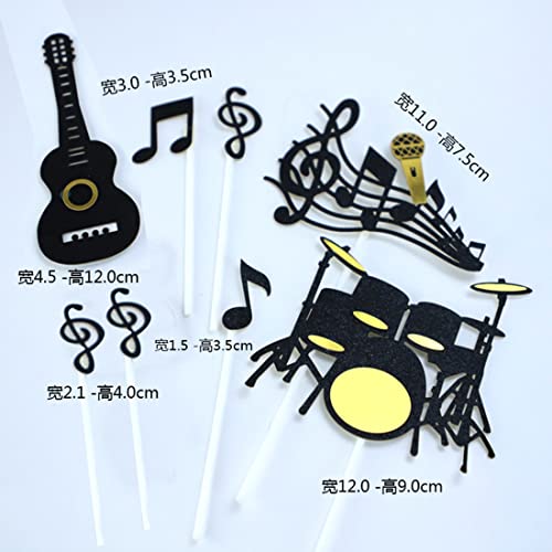 【Decorazione per torta a forma di chitarra】Il set contiene 10 pezzi di cupcake per note musicali di chitarra. Una torta di compleanno lucida, 9 note, decorazioni per strumenti musicali.