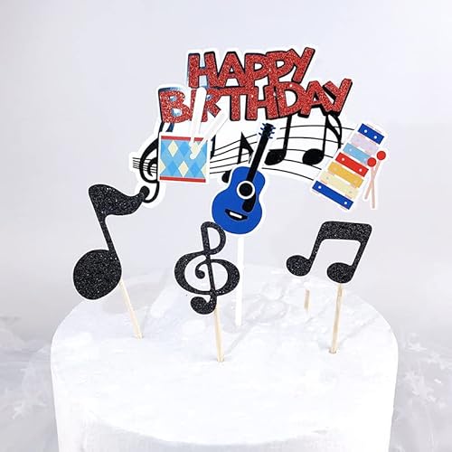Note musicali cupcake, topper per torta con scritta in lingua inglese "Happy Birthday" per bambini, ragazze, ragazzi, tema musicale