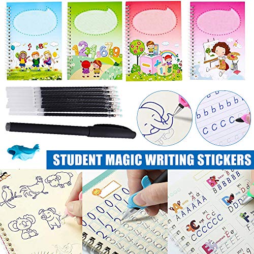 Note di Scrittura per Bambini, Set di Quaderni di Calligrafia Magica per Bambini Riutilizzabili (con Penna e Portapenne), Utilizzato per Scrivere Lettere di Calligrafia per Bambini. (4 PCS)...