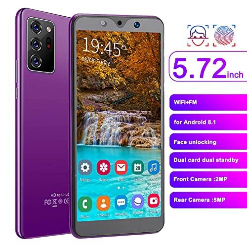 Note30 Plus Sblocca Smartphone, 512 MB + 4G 5.72 Pollici HD Schermo Intero WiFi + BT + FM Impronta Digitale Sblocco Facciale Telefono Cellulare Android Estensione da 128 GB Telefoni Sbloccati(Viola)