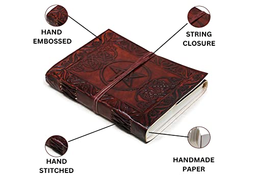 18 Cm Notebook Taccuino Pentagramma Stella Foglie Diario Agenda Quaderno Album Fatto a Mano Copertina in Pelle Grimorio Bianco Personale Di Viaggio Regalo Vintage Journal