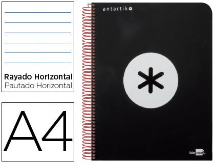 Notes a spirale, formato a4, liderpapel micro antartik coperchio polipropi leno 120 h 100 g orizzontale 5 nastri 4taladros colore: nero