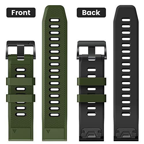 NotoCity 26mm Quickfit Cinturino Compatibile con Garmin Fenix 6X/ 6X PRO Bracciale Ricambio, per Garmin Fenix 5X/ 5X Plus Silicone Cinturino, Verde Militare-Nero