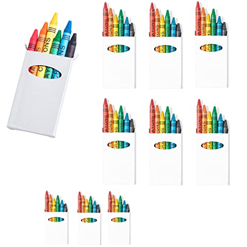 NoTrash2003 Set da 10 pezzi con 6 pastelli colorati a cera in confezione di cartone colorata come regalo per feste anche per ristoranti o alberghi in custodia ecologica (mix di colori)