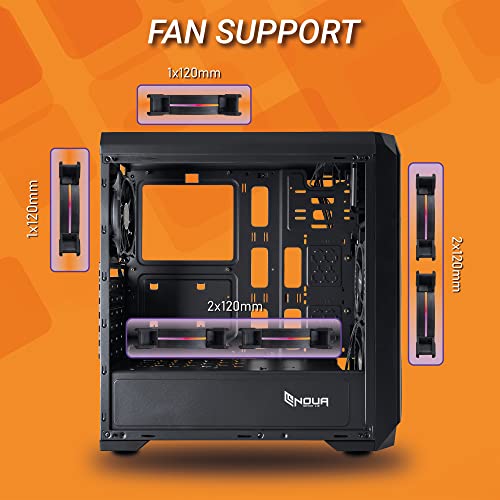 Pre-Installed: 1 Fan 120 mm triplo halo rgb rainbow auto (1*Rear) | Fan System: Front: 2*120 mm | Rear: 1*120 mm | Top: 1*120 mm | PSU Cover: 2*120 mm