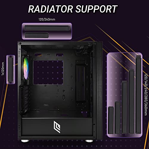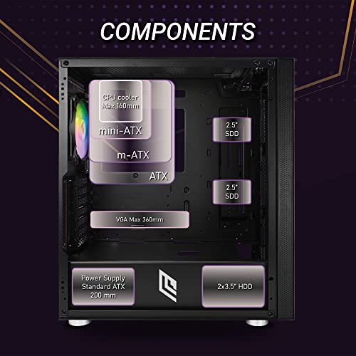 RAFFREDDAMENTO ESTREMO: Telaio di dimensioni ATX con 1 ventola ARGB preinstallata da 12 cm, espandibile fino a 6 ventole da 12 cm (3 sul frontale, 2 superiore, 1 posteriore). Supporto di raffreddamento a liquido da 36 cm frontale e 24 cm superiore, e raffreddatori per CPU alti fino a 16 cm.