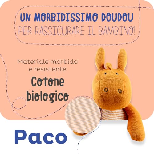 Noukie's - Doudou per bambini - Doudou in cotone bio - Paco l'Asino - Multifunzione - Ocra - 1 unità