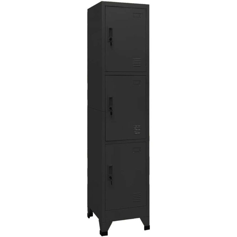 Questo armadietto a chiave ha un design moderno e sarà un'ottima aggiunta decorativa a qualsiasi stanza o ufficio. Questo armadietto è realizzato in acciaio, che lo rende resistente e facile da pulire. Ogni scomparto è dotato di una porta chiudibile a chiave con prese d'aria. L'armadietto offre ampio spazio per riporre vestiti e altri oggetti personali al sicuro. Inoltre, la targhetta porta nome e le prese d'aria consentono di disporre ordinatamente i vostri oggetti. Questo armadietto a chiave è adatto a scuole e uffici per riporre varie cose. Colore: Nero Materiale: acciaio Dimensioni: 38 x 45 x 180 cm (L x P x A) 3 ante con serratura (2 chiavi incluse per ogni porta) Con prese d'aria e portatarghette sulle porte Capacità di carico per ripiano: 25 kg Capacità di carico totale: 70 kg Assemblaggio richiesto: Sì ATTENZIONE: Per evitare il ribaltamento questo prodotto deve essere utilizzato con il dispositivo di fissaggio a parete fornito. Legal Documents: Maggiori dettagli su come