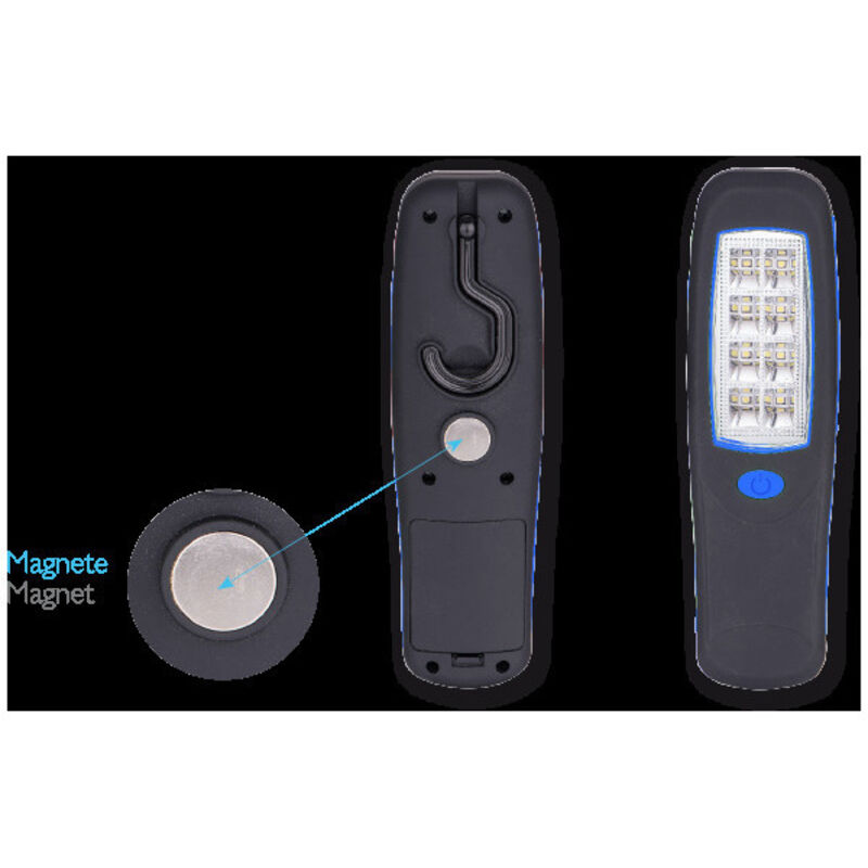 Scopri la torcia LED da lavoro NOVA LINE, ideale per qualsiasi ambiente grazie al potente magnete posteriore e al gancio estraibile. Realizzata in plastica e gomma, offre un'illuminazione potente con 24 LED DIP e 85 lumen. Funzionamento semplice con modalità On/Off. Richiede 3 batterie AA (non incluse). Colori: nero e rosso. Perfetta per il lavoro quotidiano e le emergenze. Ottima qualità e durata garantita.