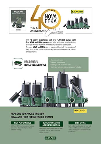 Nova è una pompa sommergibile per il drenaggio di acque chiare in ambito domestico e residenziale. Completamente ridisegnata nel 2019 per i quarant'anni di commercializzazione, ora è ancora più resistente, affidabile ed ergonomica nell'utilizzo. Nova può essere utilizzata anche per lo svuotamento di serbatoi o cisterne.