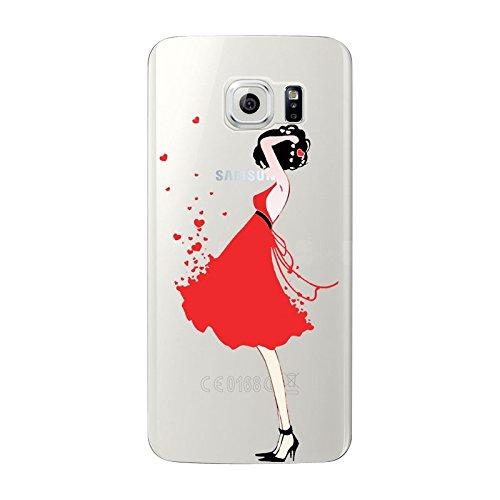 NOVAGO Compatibile con Samsung Galaxy S6 Edge (5,1'') Custodia del Gel di Silicone Trasparente (Vestito Rosso)