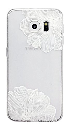 NOVAGO Custodia del Gel di Silicone Trasparente per Samsung Galaxy S6 - Fiore Bianco