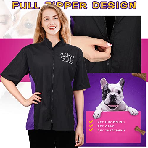 Noverlife Maniche Corte Abbigliamento da Lavoro per Toelettatura per Animali Domestici con Cerniera Completa, Taglia 3XL, Giacca Antistatica per Estetista per Animali Domestici, Uniformi Cosmetologo