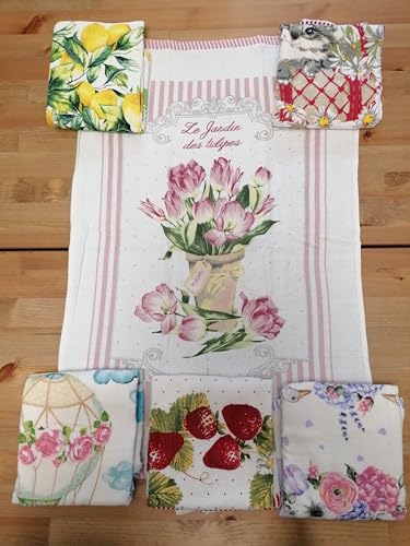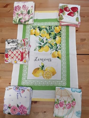 Novita!!!! Strofinacci in Spugna di Cotone 100% Limoni e Fiori Gatto Pezzi 6 Mis.50x70cm.con Passante Facile da Appendere !!!!