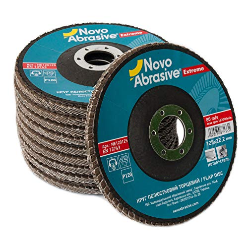 NOVOABRASIVE Disco Zircone lamellare 115 mm Grana 120 (10 pezzi), dischi abrasivi per smerigliatrice angolare per metallo, legno, INOX