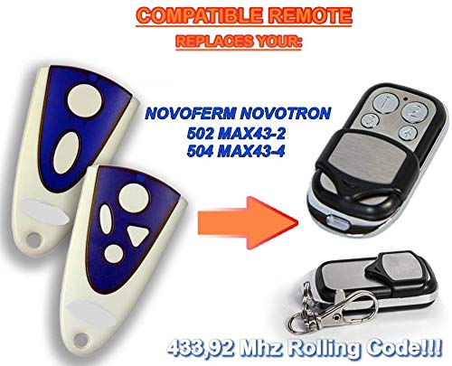 Novoferm, Novotron 502 MAX43-2, 504 MAX43-4 - Telecomando di ricambio compatibile, 4 canali, 433,92 Mhz rolling code