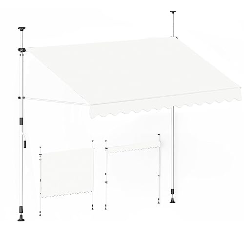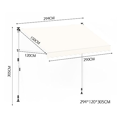 Novonova Tenda da Sole Manuale, Resistente ai Raggi UV/Sole, Tenda da Sole Regolabile in Altezza/Inclinazione, con Manovella, Tenda da Sole Retrattile Senza Perforazione, 244*120*305CM, SY-ZYP2506