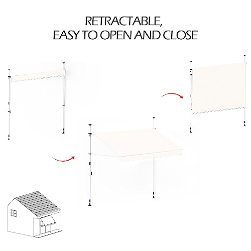 ④ Ambiente confortevole: questa tenda da sole manuale è perfetta per ombreggiare il patio o il balcone. Grazie al suo design telescopico, puoi installarlo rapidamente e facilmente tra due superfici fisse parallele. Ti offre la confortevole esperienza all'aria aperta tutto l'anno. Efficace resistenza all'acqua/protezione solare/UV. Installalo sulle finestre in m