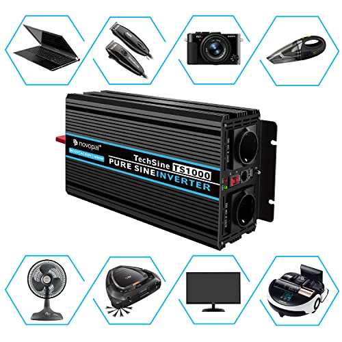 Novopal-Power Inverter Onda Sinusoidale Pura 1000w Trasformatore di Potenza Convertitore- DC 12v in AC 220v 230v 240v Invertitore di Tensione-2 EU Presa con Uscita USB-5 Metri di Telecomando