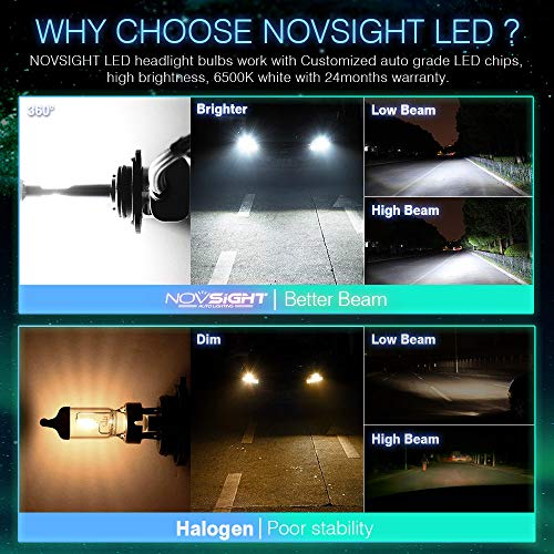 NOVSIGHT Faro LED 9012/HIR2 Lampadine Bulbi LED 50W(25Wx2) 10000LM(5000LMx2)6500K Luci di Ricambio per Auto Alogene 2 Lampade