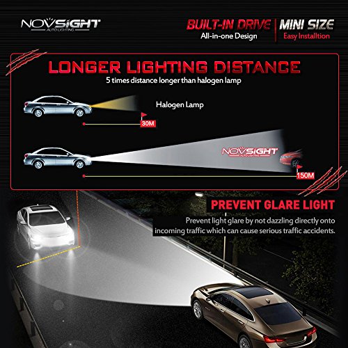 360° senza punti ciechi forte illuminazione a luce bianca, i raggi LED focalizzati non accecheranno gli altri utenti della strada, Novsight lampadina H7 LED proteggono il tuo giorno e la notte vista e sicurezza di guida.