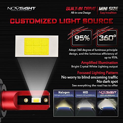 【Super Luminosità】: Novsight lampadine LED H7 Chip di livello automobilistico, Novsight lampadine LED H7 sono il 300% più luminose delle normali lampadine alogene;