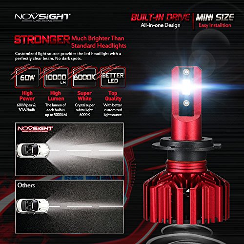NOVSIGHT Faro LED H7 Lampadine Bulbi LED H7 60W (30W X2) 10000LM(5000LM X2) 6000K Lampade sostitutive per Auto in rame B2 per lampade alogene e allo xeno 2