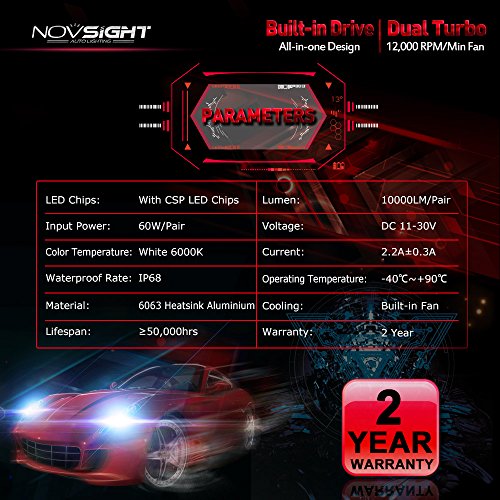 Novsight, kit di conversione di fari LED, 60 W (30 W ogni faro), con 6 chip di fari LED CSP, lumen elevato: 8000-10000 lm (4000-5000 lm per ogni faro), luce bianca fredda 6000 K. La tecnologia più avanzata per garantire un modello a fascio perfetto, senza macchie scure o luce nebbiosa.