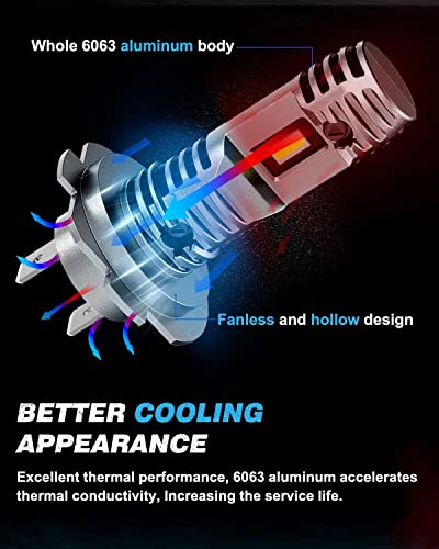 【Raffreddamento automatico】: la lampadina a LED Novsight H7 ha un sistema di raffreddamento pressurizzato direzionale integrato, che dissipa automaticamente il calore generato dal chip LED superiore per garantire il funzionamento stabile della lampadina LED. Le lampadine Novsight H7 integrano un sistema EMC per ridurre le interferenze radio.