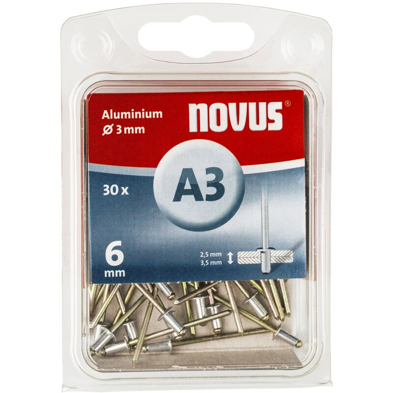 Novus aluminium-rivet - 3 mm in diametro 8 mm Confezione da 30 In confezione blister Ideale per uso quando un telaio: nichteisen metallo, plastica, pelle, materiale leichtbaumaterial