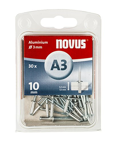Novus a 3 rivetti ciechi in alluminio con 10 mm di lunghezza, 30 rivetti ciechi con 3 mm di diametro e 5,0 - 7,5 mm Lunghezza, ottimale Niet di serraggio per fissaggio di sostanze non Ferro metallo, plastica, e pelle, 045 - 0022