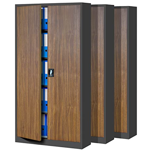 Jan Nowak Set di 3 Armadio da Ufficio C001 Archivio per Officina in Metallo Verniciato a polvere Chiudibile 185 cm x 90 cm x 40 cm (Antracite-Aspetto Legno)