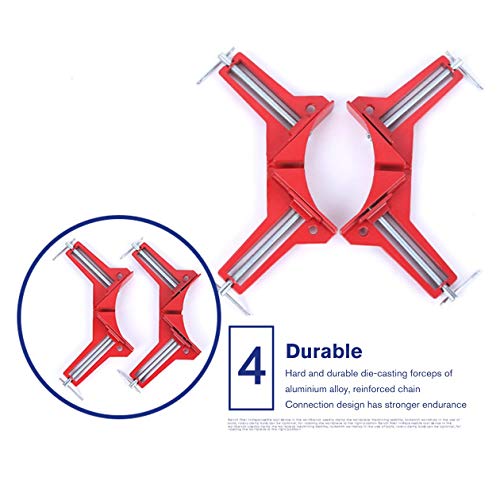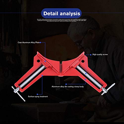 Nowakk Lega di Alluminio 90 Gradi Morsetto ad Angolo retto Cornice per Cornice Morsetto ad Angolo Clip Utensile per Supporto Angolo Destro Lavorazione del Legno, Rosso