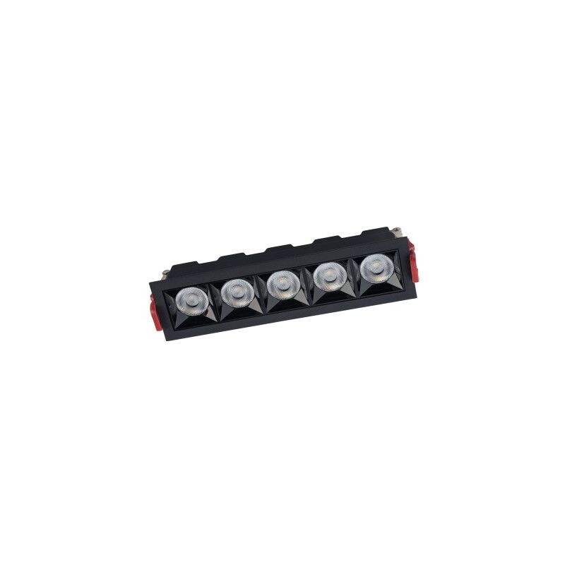 Tipologia sorgente luminosa: LED Sorgenti luminose: Integrata Materiale guida: Alluminio verniciato Colore guida: Nero Numero punti luce: 5 Potenza massima: 20 WIP: IP20 Frequenza: 50/60 Hz Voltaggio: ~220-230 V Classe di protezione: II Ambiente: Stile corridoio: Moderno Durata della vita: 30.000 h Temperatura colore: 3.000 KFlux: 1800 lm Angolo: 36 CRI: >90 Dimensioni del foro: 19,5 X 4,5 cm Fattore di potenza: >0,5 Numero di sezioni luminose: 1 Forma del foro: Rettangolare PCN: 9405119090