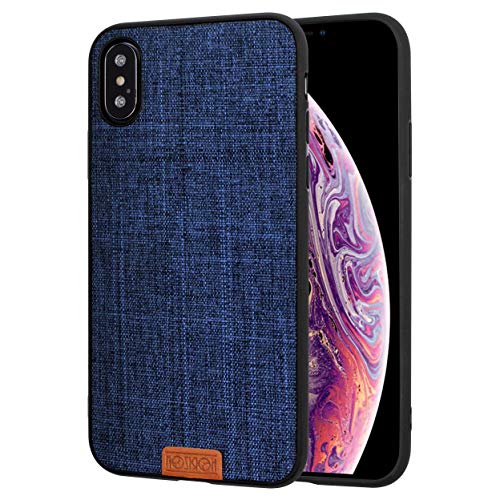 Noziroh Jeans Cover Stoffa Originale Apple iPhone XS Max Case Tessuto Denim Fibra Antiurto Navy - Blu