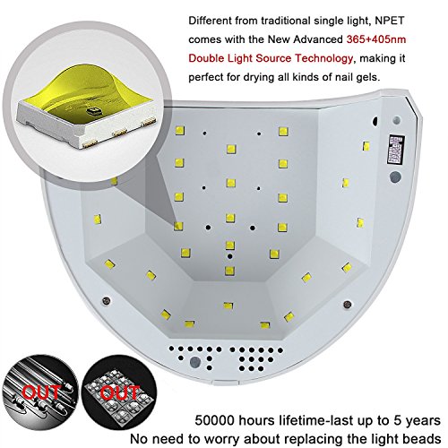 NPET Asciuga unghie lampade UV LED 48W con 3 Timer (30s, 60s, 99s) Nail Dryer Vassoio Magnetico Rimovibile per Salone e Casa