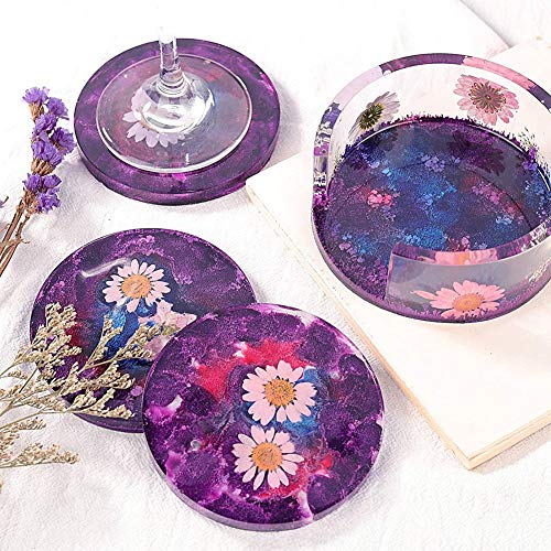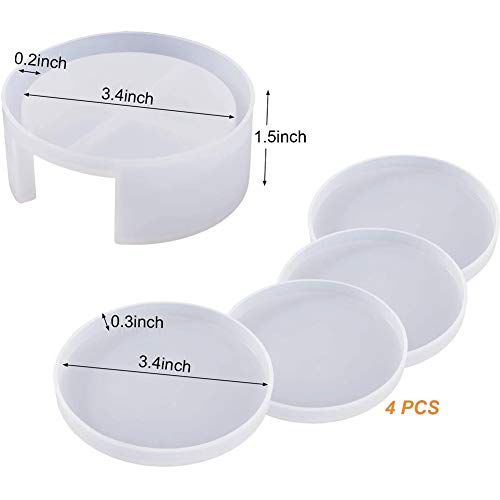 Kit di stampi in resina - 4 stampi rotondi in silicone e 1 stampo per coaster, in modo che lo stampo rotondo facile da impilare, mantenendo i vostri stampi in resina organizzati.